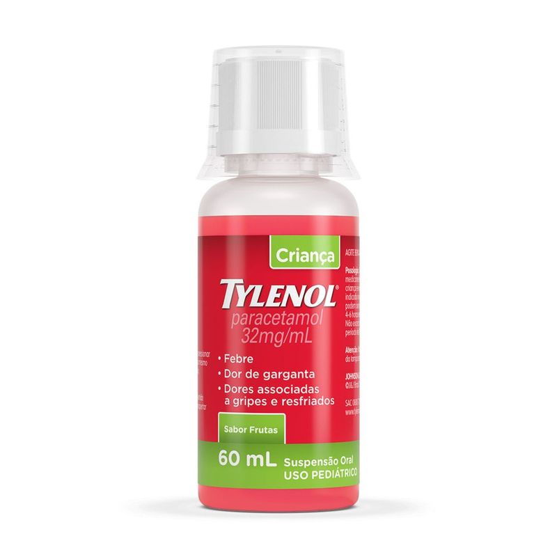 O Tylenol Criança 32mg/ml Sabor Frutas Suspensão Oral 60ml + Copo Medidor é um medicamento analgésico e antitérmico de uso infantil, formulado para proporcionar alívio rápido e eficaz. Sua substância ativa, o paracetamol, atua diretamente no sistema nervoso central para reduzir a febre e diminuir a sensibilidade à dor. É indicado para o alívio temporário de dores de intensidade leve a moderada, como as que acompanham gripes, resfriados, dor de cabeça, dor de dente e dor de garganta. A suspensão oral com sabor de frutas torna a administração mais fácil para as crianças, e seu efeito se inicia entre 15 e 30 minutos após o uso, garantindo o bem-estar dos pequenos em momentos de dor e febre.