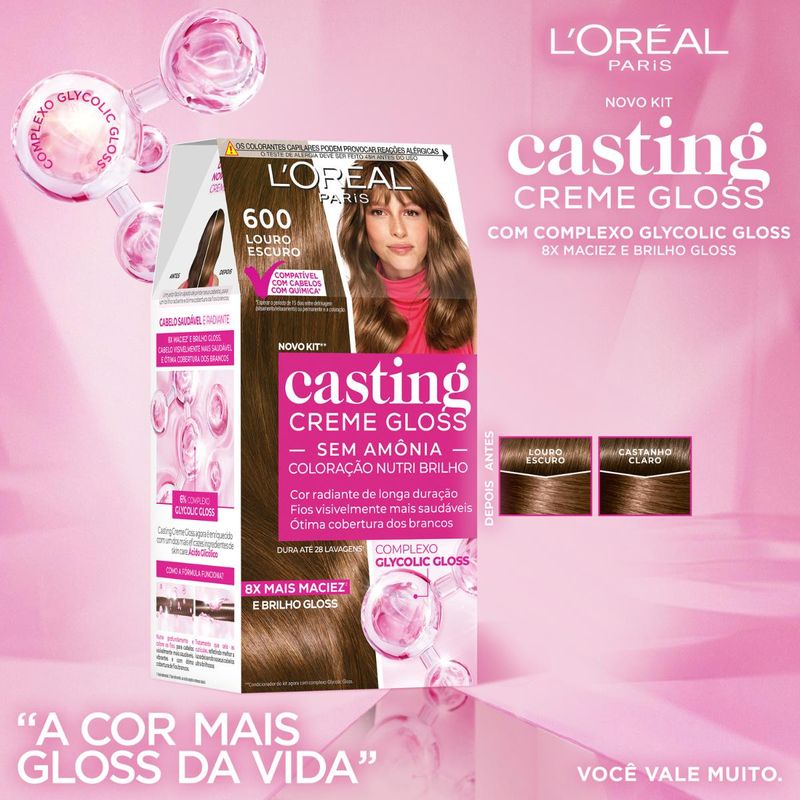 A Coloração Casting Creme Gloss 600 Louro Escuro é uma coloração sem amônia da L’Oréal Paris, projetada para proporcionar um brilho intenso e duradouro aos cabelos. Com 17 nuances disponíveis, esta coloração é ideal para quem deseja dar brilho ou transformar a cor dos fios. Casting Creme Gloss oferece excelente cobertura para os primeiros fios brancos e reflexos de cor visíveis, proporcionando um acabamento natural e vibrante.