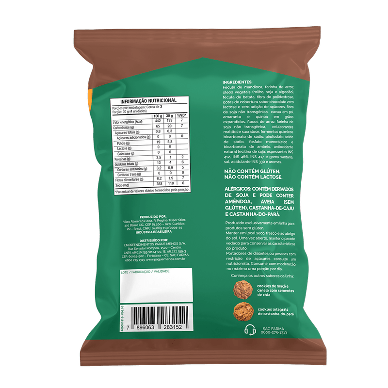 Cookies Nutrabix Sem Gluten Zero Açúcar Cacau Quinoa E Amaranto 80g