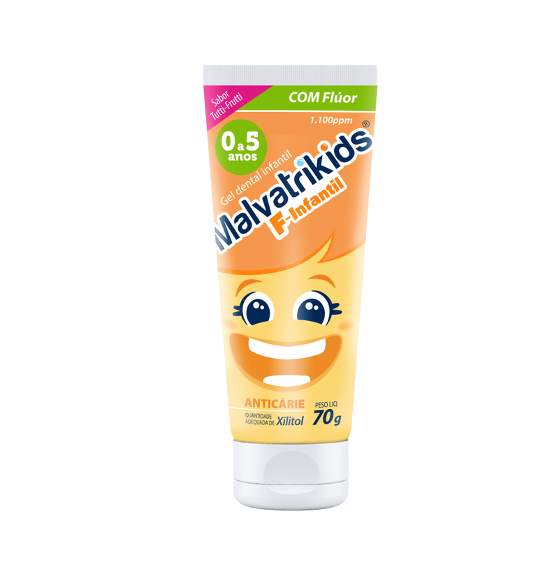 Gel Dental Infantil Malvatrikids F-Infantil Anticáries Flúor Xilitol Sabor Tutti Frutti 70g