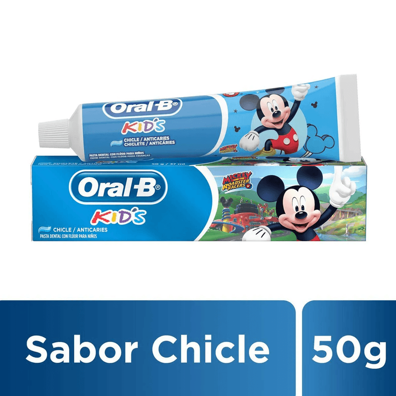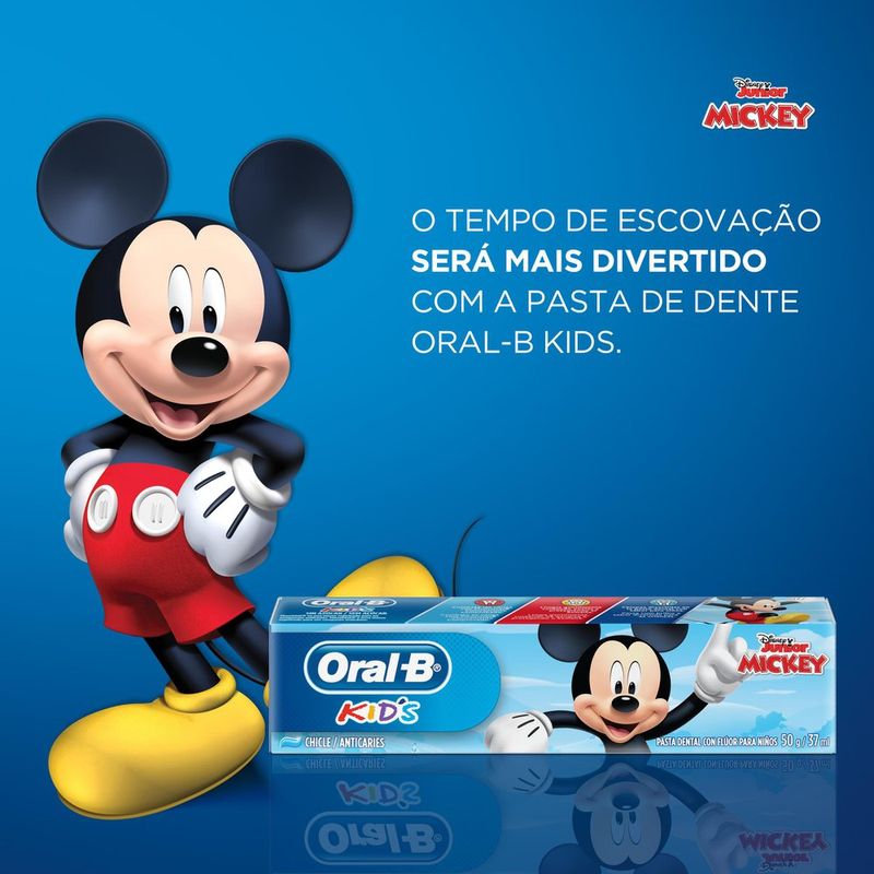 Creme Dental Infantil Oral-B Kids Mickey Anticáries com Flúor Zero Açúcar Sabor Bubble Gum 50g