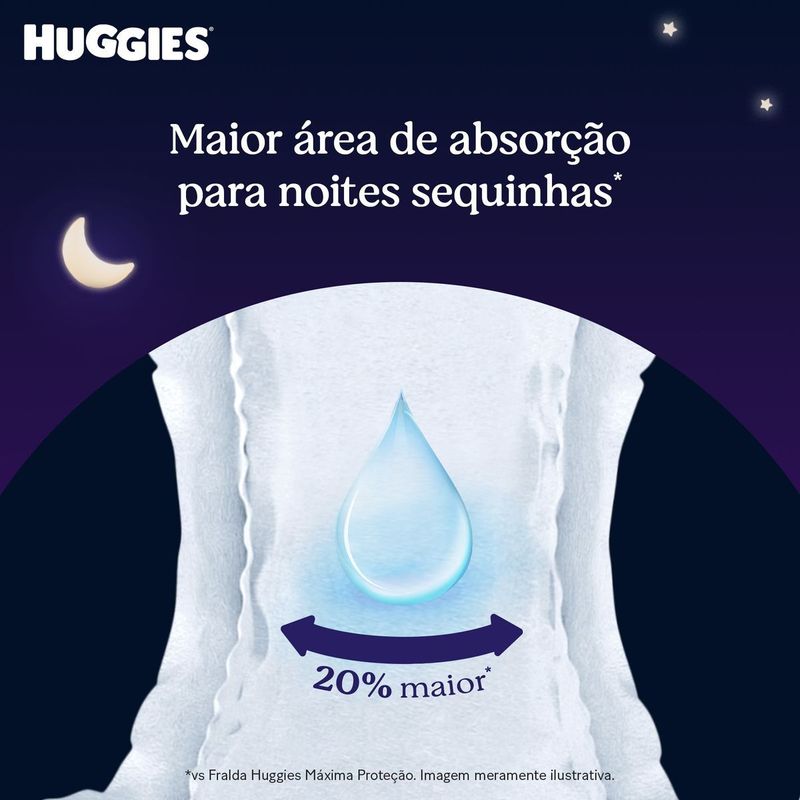 Serve para manter o bebê seco e confortável durante a noite, com alta capacidade de absorção e ajuste perfeito ao corpinho, evitando vazamentos e desconfortos.