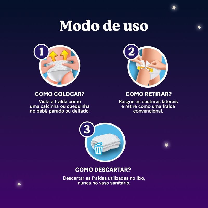 Indicada para garantir noites mais tranquilas, com absorção eficiente e ajuste confortável, protegendo contra vazamentos enquanto o bebê dorme.