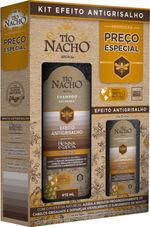 O Kit Tío Nacho Antigrisalho Shampoo 415ml + Condicionador 200ml é um tratamento capilar antigrisalho desenvolvido com geleia real e henna egípcia vegetal. Essa combinação exclusiva ajuda a reduzir progressivamente a aparência dos cabelos grisalhos, disfarçando os fios brancos e proporcionando brilho, força e aparência rejuvenescida. Os resultados podem ser percebidos a partir de 30 aplicações contínuas da linha completa.