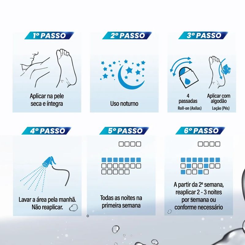 A Loção Perspirex para os Pés é um Antitranspirante desenvolvido especialmente para o cuidado dos pés. Com fórmula composta por 25% de Cloreto de Alumínio, ativo que oferece um tratamento eficaz contra a transpiração e o odor, o uso da loção Perspirex inibe o desconforto dos pés causado pela umidade, controlando o suor da região, prevenindo a formação de bactérias e, consequentemente, eliminando o mau odor. Ajuda a fornecer um grau muito alto de redução de suor por até 3 dias.