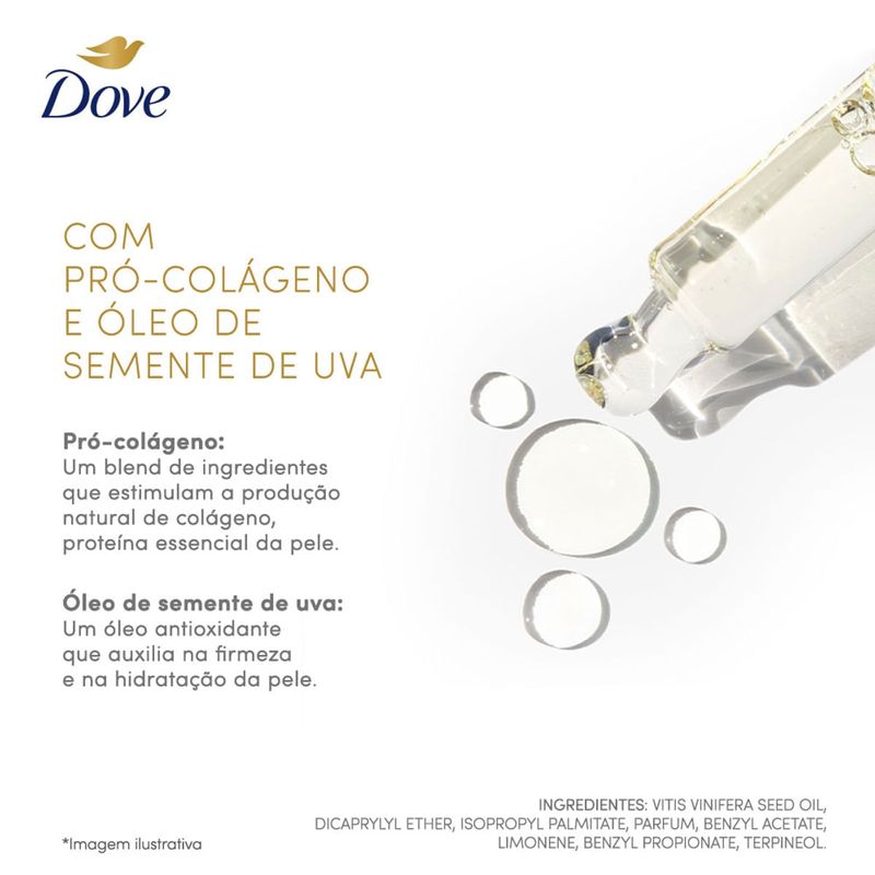 O Óleo Corporal Dove Sérum Deo Pró-Colágeno e Óleo de Semente de Uva Firmador Spray 150ml foi desenvolvido para oferecer hidratação intensa, elasticidade e efeito firmador. Enriquecido com pró-colágeno e óleo de semente de uva, promove nutrição profunda, ajuda a manter a firmeza da pele e proporciona luminosidade natural com perfume suave.