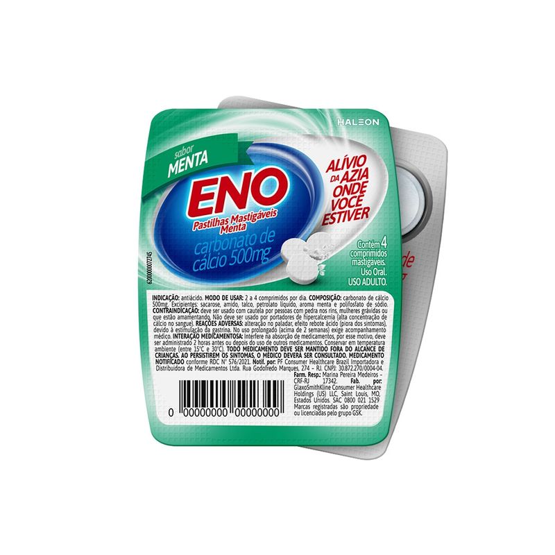 O que é Eno 500mg Sabor Menta 4 Pastilhas Mastigáveis?